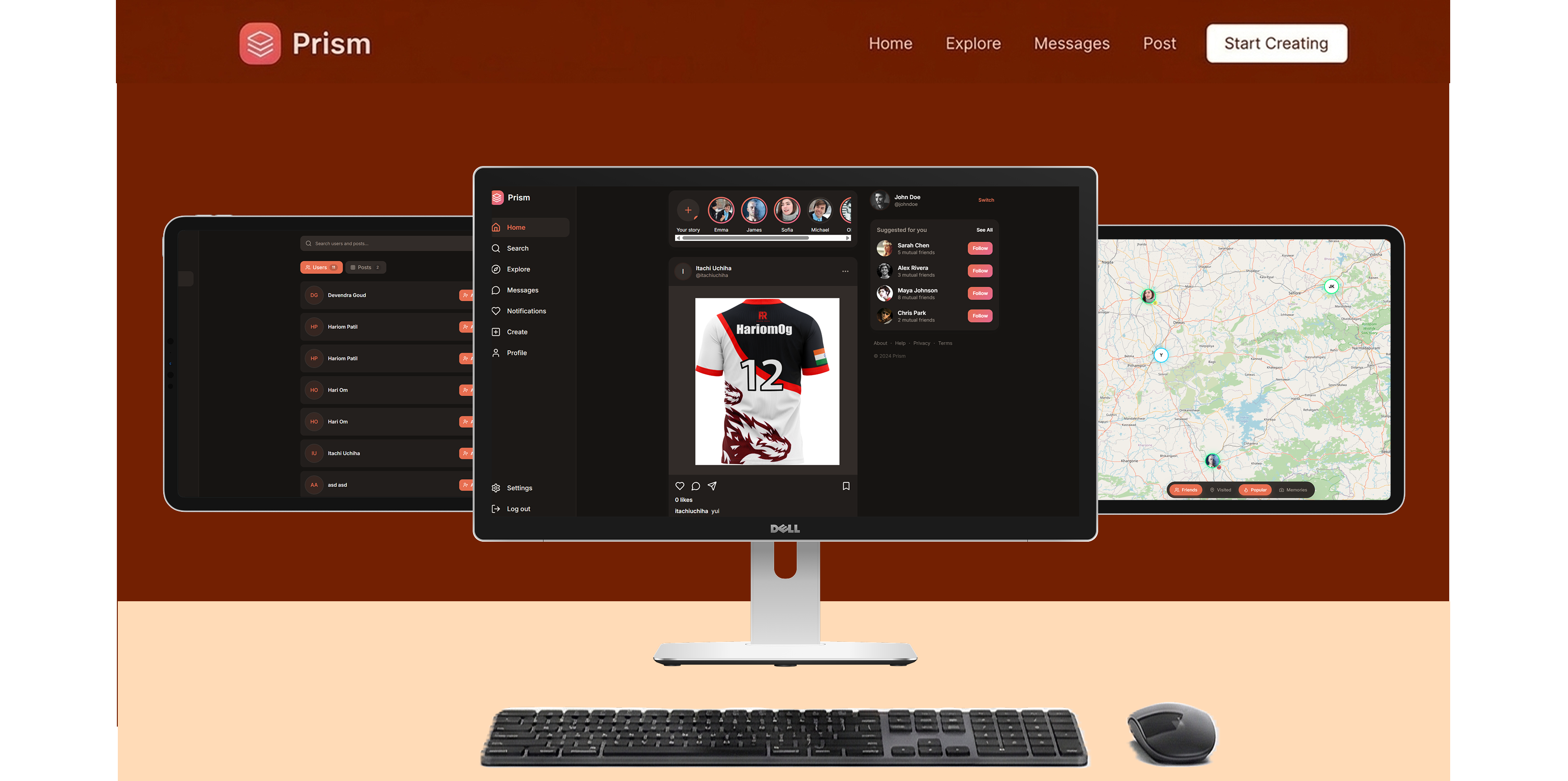 Full-stack social media platform with location-based features and interactive map visualization.